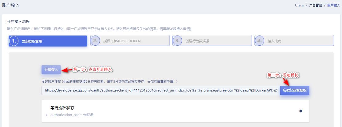 接入广点通账户,按如下步骤进行接入: