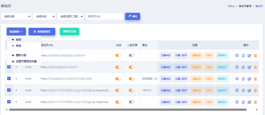 4.3落地页批量管理
