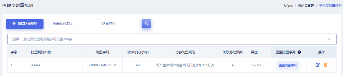 4.4落地页防重规则